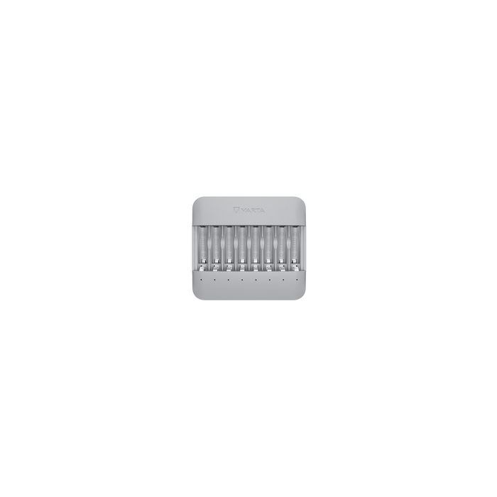 VARTA Chargeur ECO Charger Multi Recycled, non équipé 75% de matériau recyclé, design moderne, puissance de première classe, charge simultanément 1 à 8 piles NiMH AA etAAA, temps de charge: 1 heure, LED vertes, technologie de sécurité, alimentation électrique par câble USB-C, (57682101111) la livraison inclut un câble