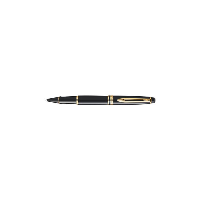 WATERMAN Stylo roller à encre Expert, Black G.C. largeur tracé, F, verni noir foncé, pièces d'ornement dorée,logo WATERMAN ciselé finement, plume en acier icoxydable (S0953690)