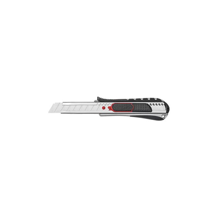WEDO Cutter 2-en-1, lame: 18 mm, noir/rouge retrait automatique de lame, blocage automatique, grip ergonomique, zone grip caoutchoutée, avec casse-lame, glissière en métal, grip métallique, incl. lame de rechange,sur carte blister (78 7018)