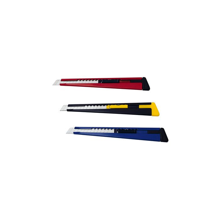 WEDO Cutter en métal, lame: 9 mm, à clip, assorti guide-lame en métal, glissière, casse-lame intégrée, livraison incl. 2 lames de rechange, assorti en couleurs chrome, bleu, rouge, noir - pas de choix spécial de couleur dimensions: (L)140 x (P)10 x (H)21 mm (78 109)