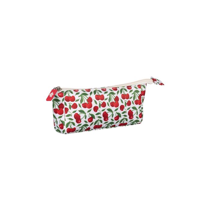 WEDO Trousse "Cerise", en polyester, couleur: blanc/rouge/vert, motif cerises rouges et feuilles vertes sur fond blanc, 2 compartiments spacieux, poche zippée séparée, 4 passants pour stylo élastiques, avec languette, dimensions: (L)195 x (P)45 x (H)90 mm (24245349)
